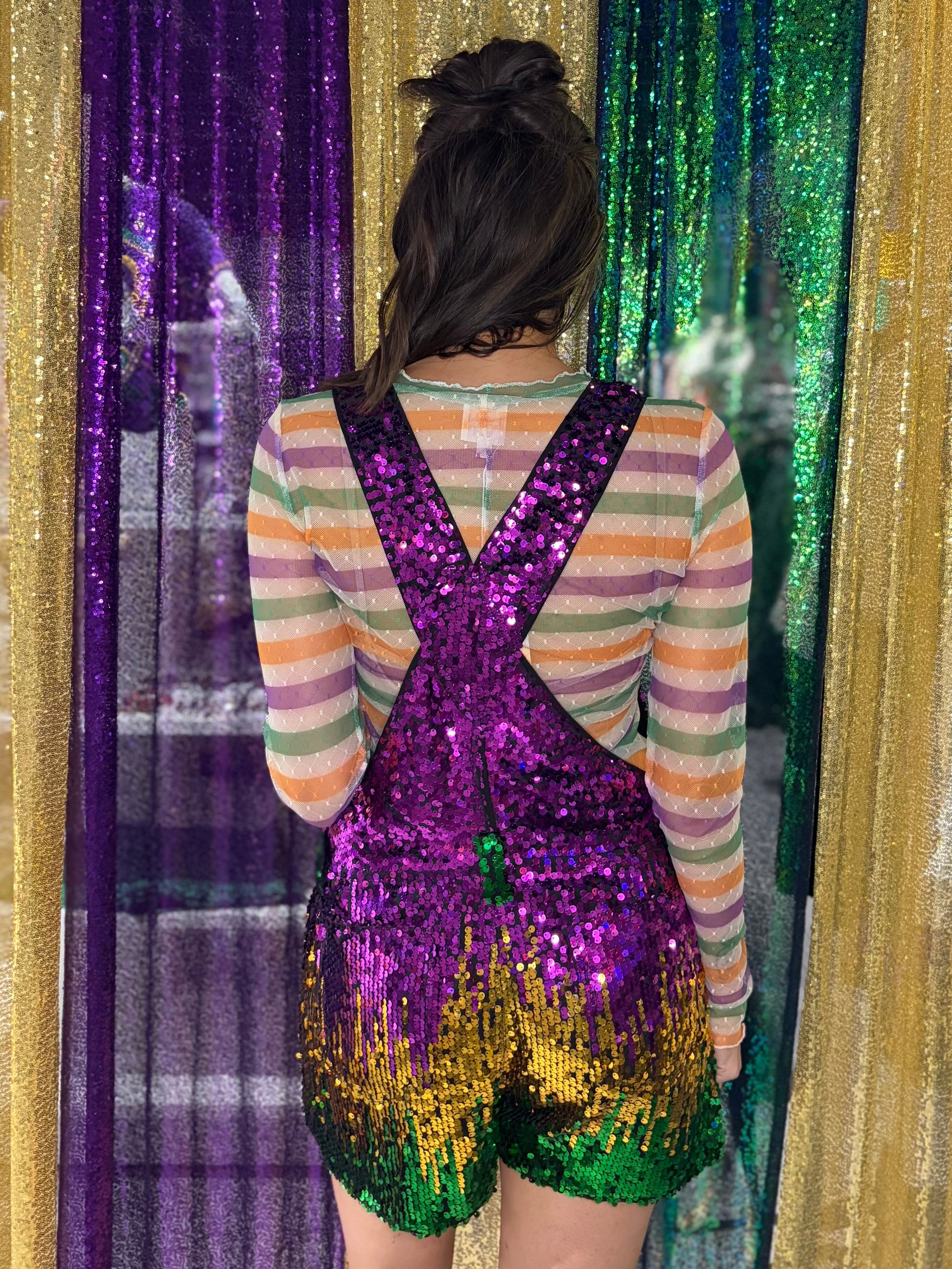 Mardi Gras Sequin Shortalls